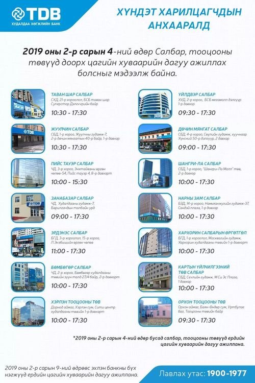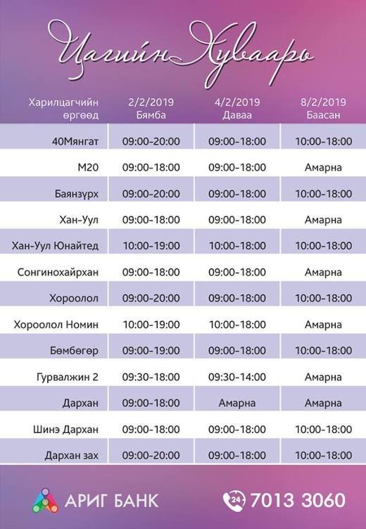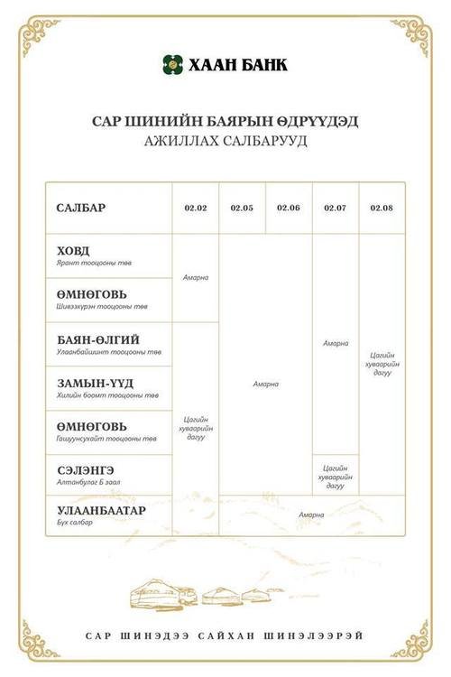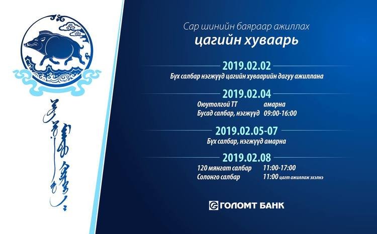 Сар шинийн баярын өдрүүдэд банкуудын ажиллах цагийн хуваарийг хүргэж байна. Банкны салбарууд амрах ч экспресс банк, АТМ-ууд 24 цагаар ажиллана.