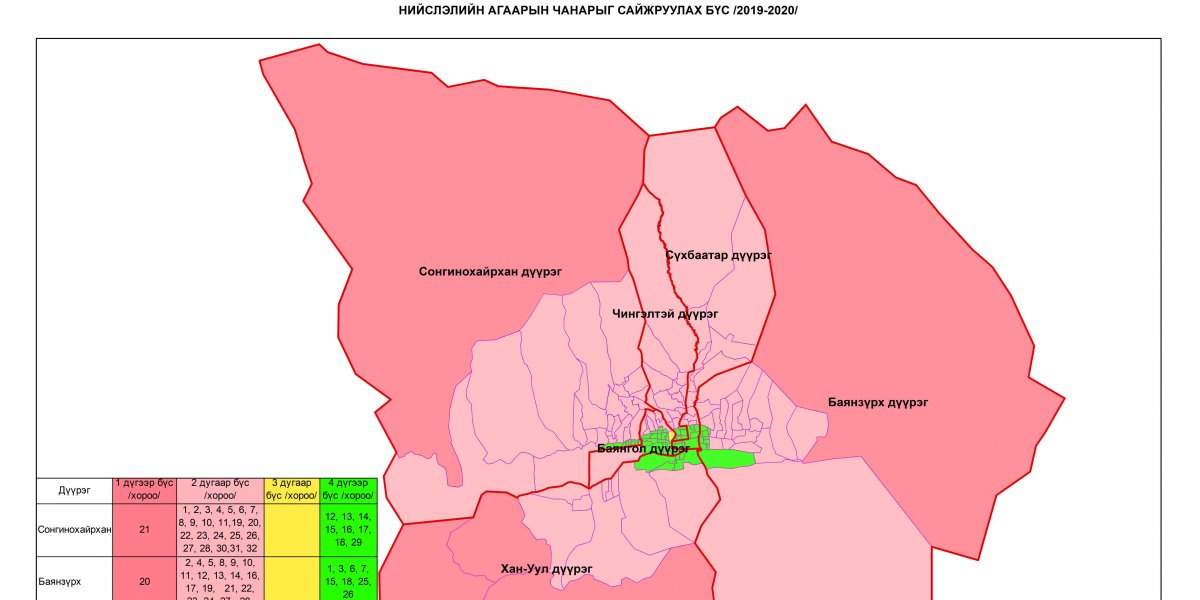 Агаарын тухай хууль, Засгийн газрын “Түүхий нүүрс хэрэглэхийг хорих тухай” 62 дугаар тогтоолын хэрэгжилтийг Нийслэлийн хэмжээнд зохион байгуулах зорилгоор оролцогч талуудын эрх, үүргийг нарийвчлан тогтоож, хүчин төгөлдөр мөрдөгдөж буй хууль эрх зүйн хүрээнд Нийслэлийн агаарын чанарыг сайжруулах бүс, түүнд мөрдөх журмыг Байгаль орчин, аялал жуулчлалын сайд, нийслэлийн Засаг дарга бөгөөд Улаанбаатар хотын захирагчийн 2019 оны наймдугаар сарын 14-ний хамтарсан А/433-А/820 дугаар тушаал захирамжаар шинэчлэн баталлаа.