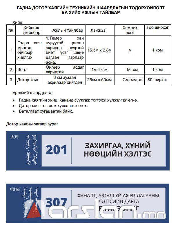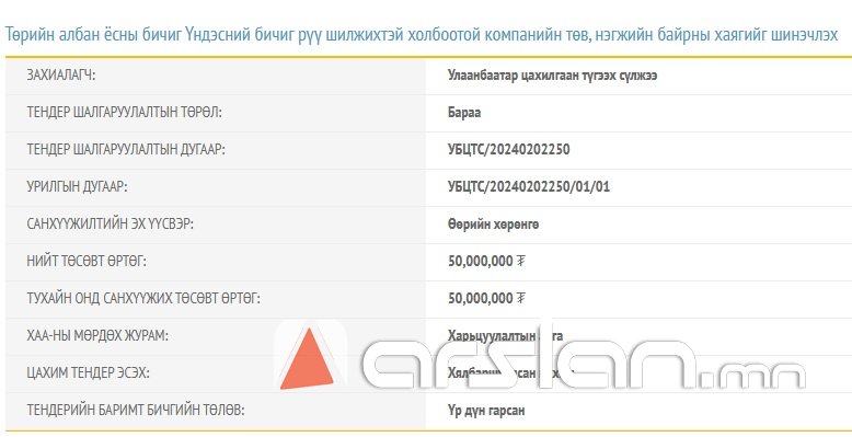Тодруулбал, тус компани төсвийн 50,000,000 төгрөгөөр Төрийн албан ёсны бичиг Үндэсний бичиг рүү шилжихтэй холбоотой компанийн төв, нэгжийн байрны хаягийг шинэчлэхээр ийнхүү тендер зарлажээ.
