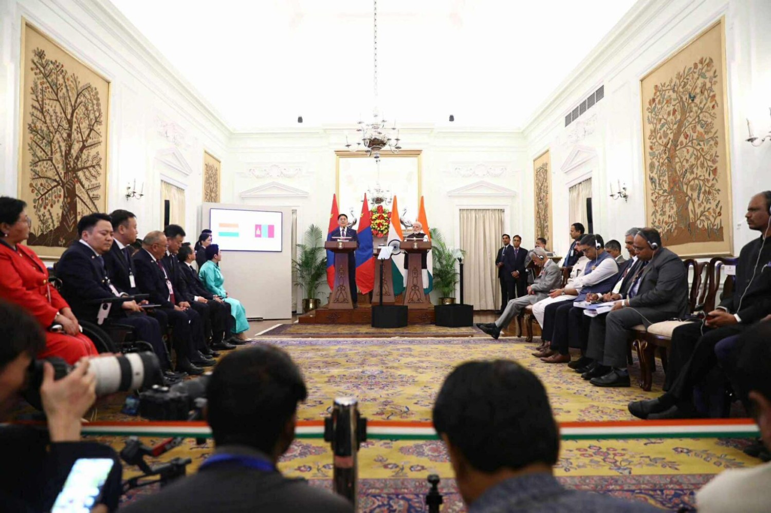Ерөнхийлөгч У.Хүрэлсүх, Ерөнхий сайд Н.Моди нар хэлэлцээний үр дүнгийн талаар хэвлэл мэдээллийн байгууллагуудын төлөөлөлд мэдээлэл өгөв.