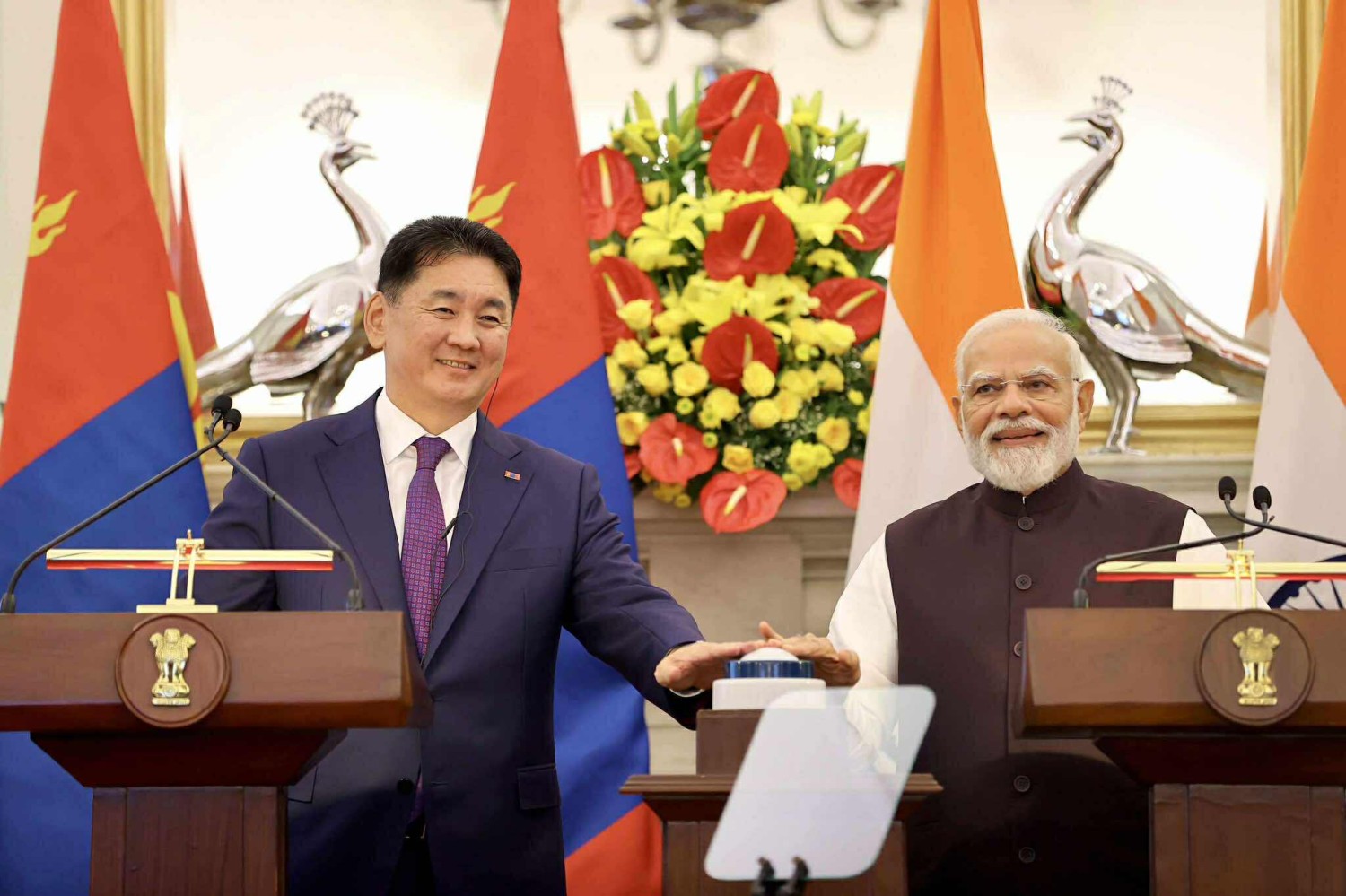 Монгол Улсын Ерөнхийлөгч Ухнаагийн Хүрэлсүх болон нийт төлөөлөгчдийг Энэтхэг Улсад хүлээн авч байгаадаа баяртай байна.