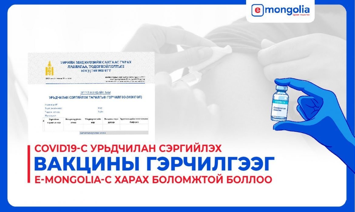 Вакцинжуулалтын гэрчилгээг “E-Mongolia“ цахим хуудаснаас авна